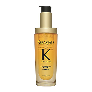 The bestselling, iconic Kérastase Elixir Ultime hair oil is now refillable. This leave-in hair oil, with its unforgettable shine and addictive fragrance delivers softness and nourishment to all types of hair, making it the best hair oil for dull hair. Deeply luxurious, this shiny hair oil is formulated with a combination of wild camellia and French camellia, delicately harvested by hand in Brittany, France. Lightweight, and gently scented with the iconic Kérastase perfume, this hair oil is a multi-sensorial and highly versatile hair treatment. It can be used as a pre-cleanse, or a pre-blow dry oil, and for finishing and touch-ups during the day to leave the hair smoother and more manageable. After 2 drops: +100% more shine* +70% instant softness** -76% less frizz during 96H** *instrumental test after 48H **instrumental test The golden bottle of this iconic shiny hair oil is now refillable and comes in two-pieces: an outer bottle made of 30% recycled glass and a refill made with 95% recycled plastic***. Designed to last, this bottle can be continuously refilled.**** ***Except the pump, the label and colorants/additives ****Only on the 75ml refillable format and 75ml refill format.
